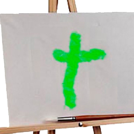 Korset jeg har malet er lysegrønt. Det er det, fordi at lysegrønt er håbets farve. Og Jesus er fuldt af håb. Han håber hver dag på, at I vil huske på ham, bede til ham og lade ham være jeres følgesvend her i livet.