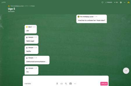 Smid et spørgsmål ud til konfirmanderne som de kan kommentere på. Da alle er anonyme er der frihed til at tale sammen. Se tavle - klik her