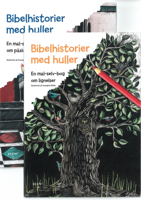 Bibelens historier er fyldt med huller, som fantasien selv må fylde ud. I denne påskemalebog er der i bogstavelig forstand huller i historierne.