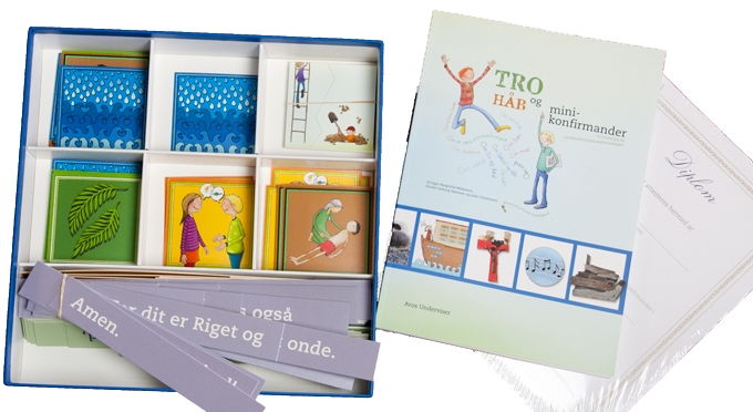 Materialet er samlet i en kasse, der rummer en bog til underviseren, forskellige redskaber til forløbets aktiviteter og diplomer til uddeling ved forløbets afslutning. Materialet er pædagogisk og overskueligt tilrettelagt og kan tilpasses undervisningen i det enkelte sogn.