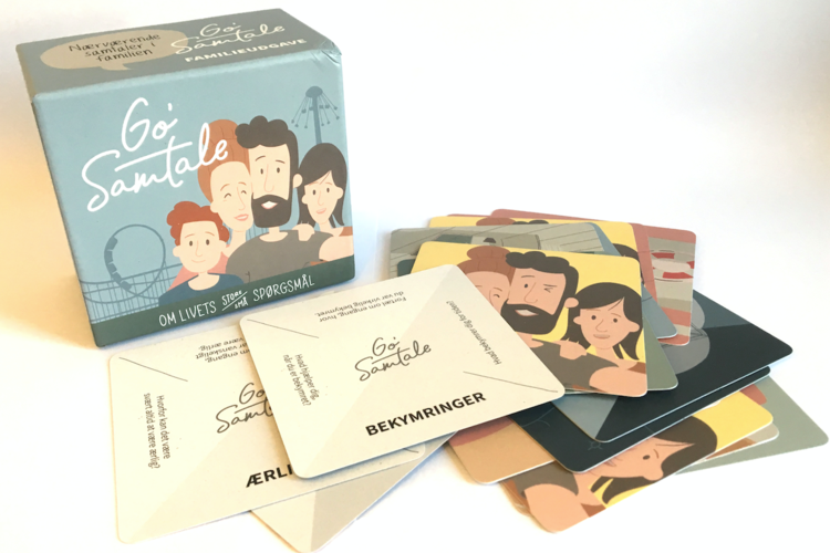 Go’ Samtale er 90 illustrerede samtalekort om livets store og små̊ spørgsmål. Hvert kort har sit eget emne, og tre spørgsmål hjælper jer i gang med spændende samtaler.