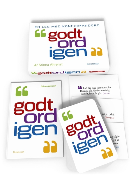 Godt ord igen består af en æske med 2 sæt kort med skriftsteder – 90 i alt, fordelt på følgende temaer: Tro, håb, kærlighed, tilgivelse og byrder. Sammen med kortene følger en vejledning med en række kreative undervisningsforslag.