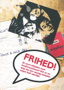Frihed - Den første er en lykønskning fra kirken på selve konfirmationsdagen. På bagsiden af hæftet er der gjort plads til en personlig hilsen fra præsten. Folderen rummer samtidig en række grubleopgaver , der kredser om frihed, kærlighed og tro.