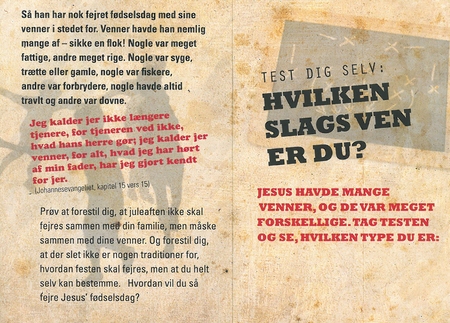 Jul med vennerne - Anden folder er en julehilsen, som vender julen lidt på hovedet og samtidig sætter fokus på venskaber. Folderen indeholder bla. en "hvem-er-du guiz". Sammen med folderen følger også fem julekort, som konfirmanden kan sende til familie og venner.