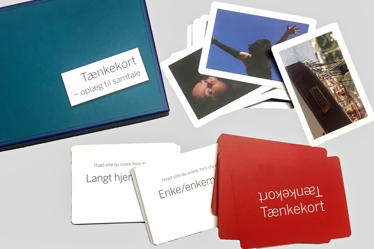 Tænkekort rummer 192 kort, der kan hjælpe samtalen i gang. Kortene kredser om tro og eksistens og vores liv med hinanden.