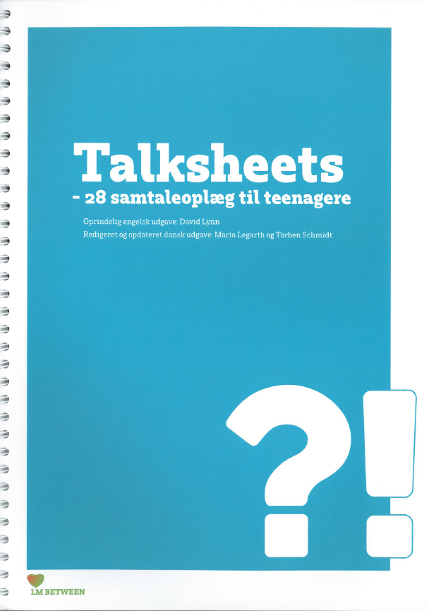 Talksheets er et materiale med 28 samtaleoplæg til teenagere. I forordet står der: